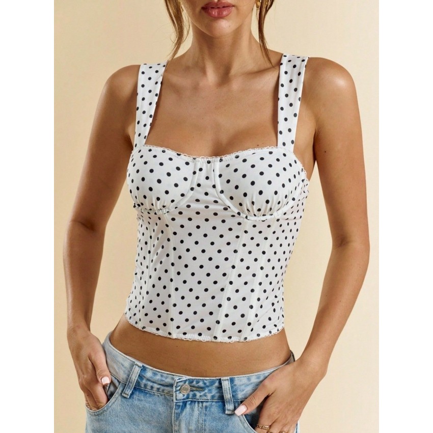 Polka-dot Printed Underwire Camisole For Parties And Dates