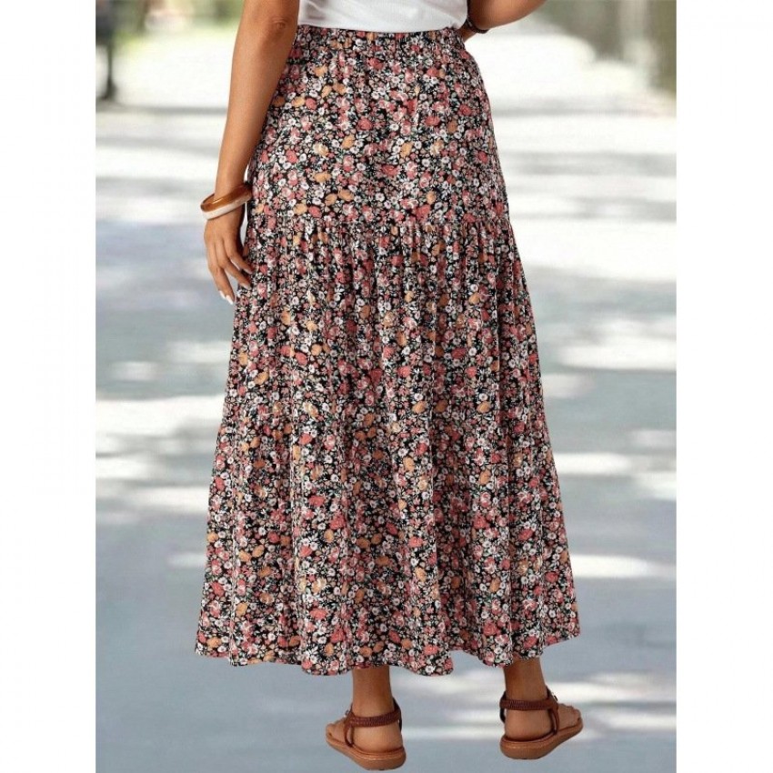 Fashionable Printed Floral High-Waisted Skirt